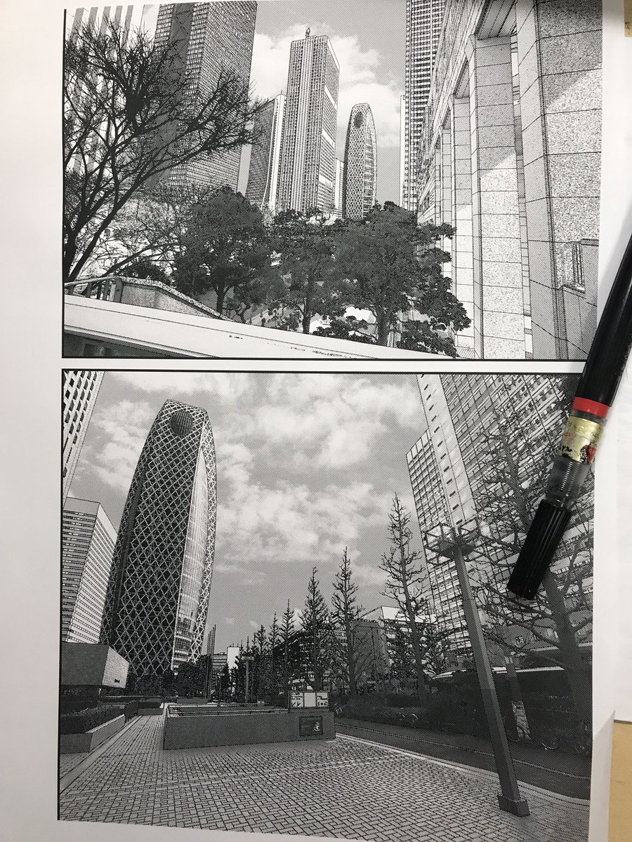 基本的に3Dは背景だけで人物やクリーチャーなどはシャーペンと筆ペン - 3dに 見える背景