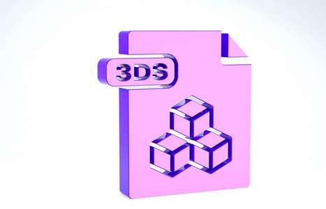 金色3DS文件文档。下载3ds按钮图标隔离在白色背景上。3DS文件符号
